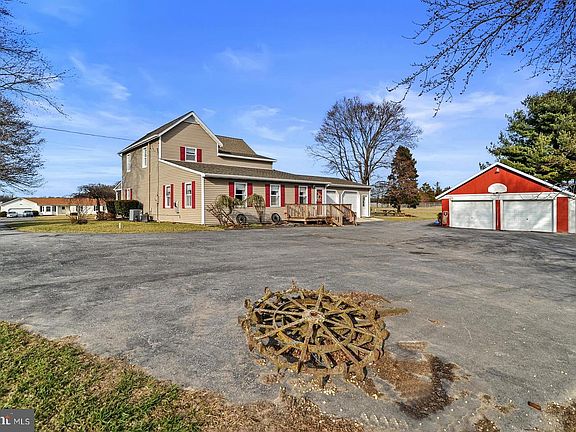 Such a Charming Home! This former Amish home has been updated and lovingly taken care of. 2 acres of land. Stunning views from the front porch. 3BR/2Ba with first floor primary bedroom and full bath. Extremely large family room, lots of closets, country kitchen with double ovens, dishwasher and tons of counter space and storage, and a large dining room for entertaining. Upstairs you will find 2 additional very large bedrooms, as well as a bonus room! Large full bath upstairs. Attached is an extra large 2 car garage. New gravity fed septic in 2015. Outbuildings painted 2 years ago. Large detached shed/garage with doors on each end and overhead storage & elec. Large red barn with elec & water, Run in shed with elec & water, Dog Kennel with elec & water. All outbuildings sold as is. Original home was built in 1940 (dirt floor basement). The large FR addition was added in 1982 with a traditional basement. Stairs are steep, please be careful. Both basements are sold as is. Heat Pump w/ AC in Main Home. DE Elec Coop! FR addition uses propane and window AC. Propane tank is owned. Located on the corner of Sharon Hill RD and W Denneys RD. Great location. Buyer to perform due diligence as to usage of land, room sizes and outbuilding sizes. PLEASE DO NOT TOUCH THE ANIMALS OR PUT YOUR FINGERS THROUGH THE FENCE.