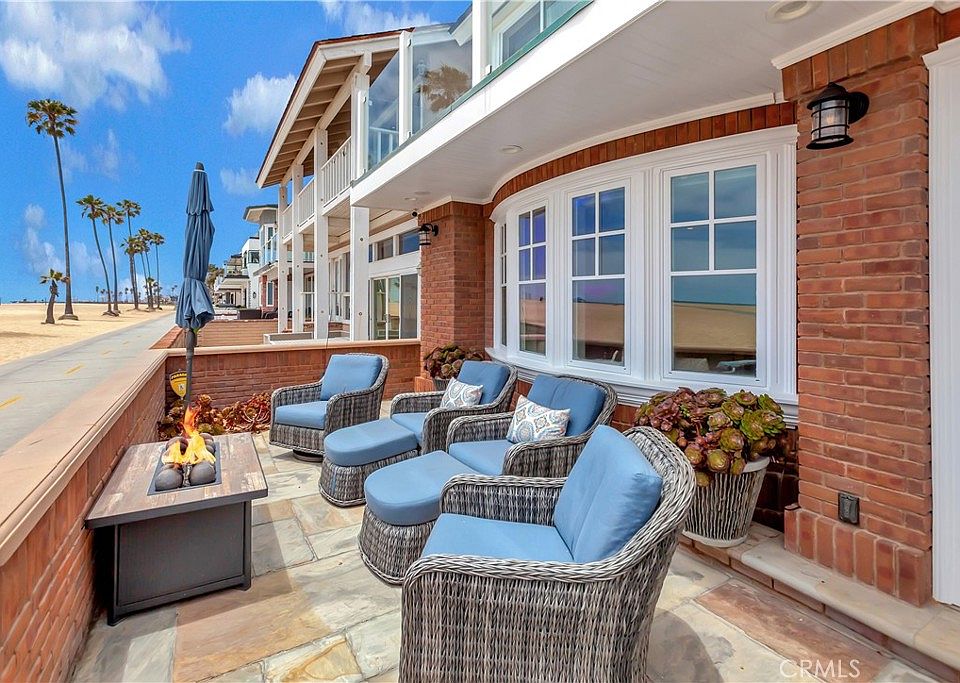 **Price IMPROVEment** Nestled on an oversized corner lot, this magnificent two-story home offers a relaxed oceanfront living experience. Located in the heart of the Balboa Peninsula with its breathtaking panoramic views of the Pacific Ocean. Enter through the dutch door to an open floor plan that includes a family room, bay windows, fireplace, dinning area with cofferd ceiling and a bright functional kitchen. Off the kitchen is a main level bedroom, two bathrooms, and laundry area. Step down into the great room with beamed ceilings, fireplace, an abundance of storage space. Large sliding glass doors open to a very private enclosed side patio, perfect for pets to roam freely. Attached is an oversized two car garage, next to the garage behind the double door access gate gives way for a third auto. The second level consists of three bedrooms, two baths, a walk in closet, and a balcony off two of the bedrooms overlooking the boardwalk and blue sea. Asend up the third staircase to the roof top with a gas fireplace, countertops, a refrigerator, spot for a bbq, storage, and 360 degree sweeping views from Newport Coast to Catalina. Over the years, there has been upgrades and additions from the exterior to the interior leaving the quintessential character of the costal chic original build.