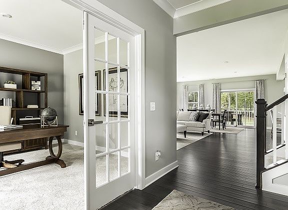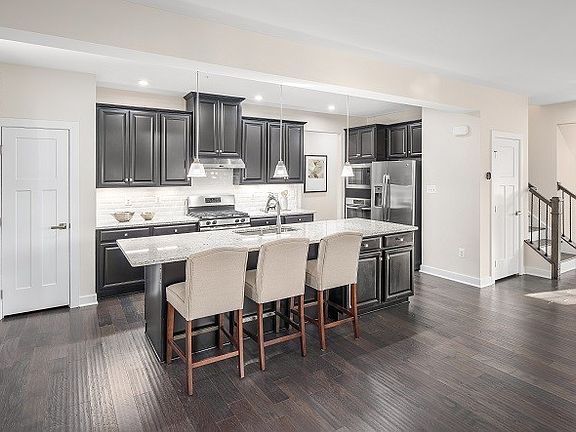 Hudson: 4 bedroom home with the Master Up and a full suite on the main level, plus upstairs Loft.Weather Grey LVP throughout the first floor,Craftsman finishes through out the whole house with quartz kitchen counters, expansive island, and stainless steel appliances, gas cooking.Granite and ceramic in all baths.Master bedroom features his & her closets with private ensuite w/a large soaking tub and walk- in shower. All on private tree-lined homesite with a beautiful deck to enjoy the views.