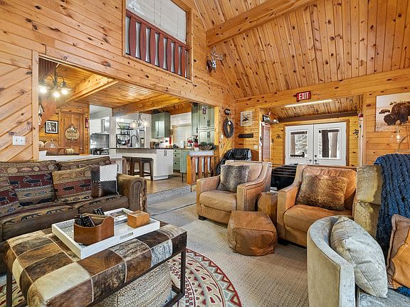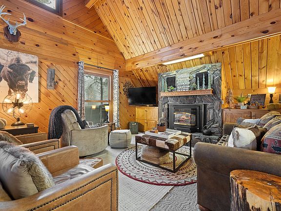 Listed by Cheri St. Pierre, Broker - Berkshire Hathaway HomeServices Midwest Realty (605) 390-2481. Picturesque, furnished cabin nestled in the pines on 1/3 acre, just a minute's drive to Terry Peak! Lavish, sun-drenched living room with vaulted ceiling & cozy stone-encased gas fireplace. Chef's delight kitchen with large center island, high end cabinets, heaps of countertop space, industrial-sized stainless steel appliances & spacious dining room. Striking vinyl plank flooring extends throughout the main level & into the gorgeously-designed addition (2022), which boasts 2 great-sized bedrooms, full bathroom with walk-in tile shower & separate tub, 3/4 bathroom with walk-in shower & handy laundry. Walkouts to a huge 35x11 partially covered deck with desirable hot tub space as well as an unfinished deck. Loft area houses a 3rd bedroom as well as sitting area with window looking down on the living room. Newer 28x26 detached 2-stall garage with oversized 12' door, 10000 lb drive-on lift & room for a loft, plus a separate 1-stall garage/shed. Pine trees galore & close to all the best Hills activities: skiing, snowmobiling, hiking, mountain biking & historic Deadwood!