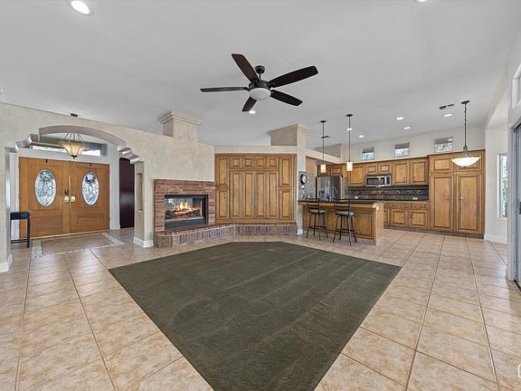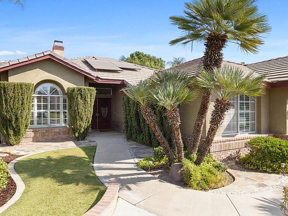 Come check out this great 4 bedroom home located in the desired Hurlingham Estates neighborhood of NW Bakersfield. Entering the home you will notice a unique sitting area with double sided fireplace. On the other side of the fireplace is the formal living room with views of the sparkling pool, spa, and mature tropical landscaping in the backyard. The kitchen is an open layout with natural edge soap stone and stainless steel appliances. The primary suite is spacious accented with a vaulted ceiling, walk in closet, and private exit to a semi secluded private patio area. The primary bath features dual vanity sinks, walk in shower, and jacuzzi tub perfect after a long day. All of this and a fully paid off Owned Solar system. Schedule your showing today, this is a good one!