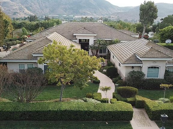 This beautiful view property is located in the gated community of Las Brisas. This home sits on a 1-acre usable parcel with 4 bedrooms plus an office or optional 5th bedroom. There are 4 full bathrooms plus a half bath, a formal living room with custom fireplace & high ceilings, formal dining area, large family room with built-in entertainment center and fireplace. The gourmet kitchen has a large center island, double oven, five-burner cooktop, large walk-in pantry, & eat-in area. Down the hall, you will find a separate bonus area, 3 bedrooms each with their own private bathrooms, a large indoor laundry room with sink & plenty of cabinets. The master bathroom features high ceilings, a fireplace, beautiful custom built-ins & a remodeled master bath with jetted tub & large shower with multi shower heads & a walk-in closet. This home features an oversized 3-car garage with custom floors, built-in air compressor, pull down storage & a powder bathroom. The yard is an entertainer's delight with beautiful outdoor fireplace, barbecue area, gated pebble tec pool & spa, numerous fruit trees, beautiful views, custom shed, garden area, playsets, large RV access or area for a horse facility, pond, gazebo and more. The home is solar-powered (owned)!
