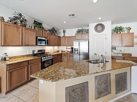 Welcome to this stunning 3 bedroom, 2 bath oasis! This gorgeous home is situated on an oversized lot and features tile floors throughout the entire house. Entertaining family and friends is made easy with the open floor plan, built in surround sound, granite countertops, gas stove and stainless steel appliances. Relax outside in your heated pool & jacuzzi complete with upgraded remote controlled equipment, extended Kool decking, paver fire pit and large pergola - it's like having your own personal resort! The landscaping has been meticulously maintained with fruit trees and low maintenance rock. This home shows like a model home! Don't miss out on this incredible opportunity to own this perfect dream home that offers everything you need for modern day living!