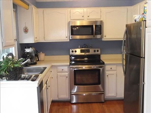 Fantastic end unit townhouse with beautiful Hardwood Floors. Lots of updates; NEW Roof, Siding, Front Door, Bay Windows, HWH, Disposal, Faucet & Fresh paint, etc..Family rm of kit, sep. Dining rm & Living rm on just the main floor. Enjoy your evenings on your private Deck or Patio backing to trees or watch a ballgame in your spacious LL Family rm. Come and take a look!!.