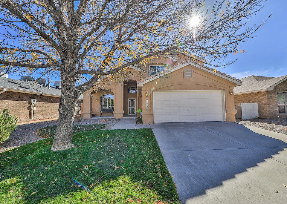Honey, stop the car! We just found our new home! Check it out.....Beautifully updated home with granite counter tops, kitchen island, newer appliances and large, open floor plan! The front and backyards are impeccably landscaped by master gardener! You will be impressed by your backyard oasis. The master bedroom is conveniently located downstairs and showcases two closets, large master bath with double sinks and large garden tub and separate water closet. The upstairs features two generous-sized bedrooms, loft and full bathroom. You will love the vaulted ceilings and laminate floors. The downstairs features large living space, dining room, kitchen and powder bath. Conveniently located close to KAFB, Costco, restaurants, public transportation and easy access to I-40. Must see today