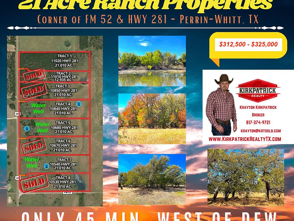 STUNNING RANCHETTES WITH GREAT DIVERSITY AWAITING YOUR CUSTOM RANCH IMPROVEMENTS! Tract 1 offers heavily treed scenery with abundant wildlife and native grasses. This 21.01 acre tract is ideal for your custom home or barndo build with several great building locations secluded among mature post oaks and live oaks. If you're a hunting or wildlife enthusiast, this property would be ideal for your weekend getaway within an hours drive of the DFW Metroplex. Conveniently located to the Cutting Horse Capital (Weatherford), the Historical Baker Hotel (Mineral Wells) and one of the most Iconic Lakes in the World (Possum Kingdom Lake). Imagine the evenings watching the sunset and the peaceful nights looking at the bright stars! Bring the horses, dogs and children and enjoy the country lifestyle!!!