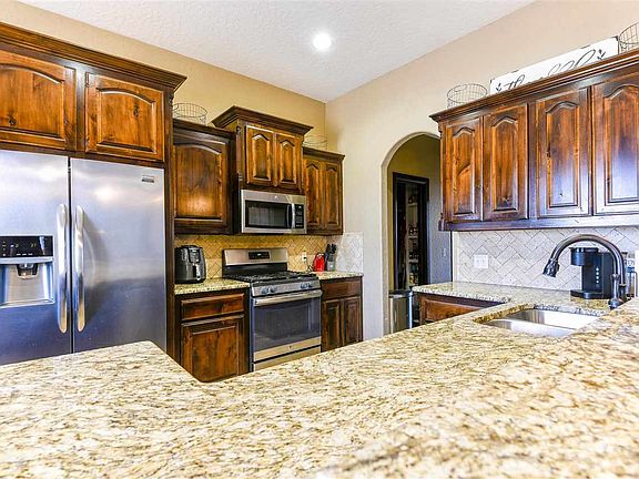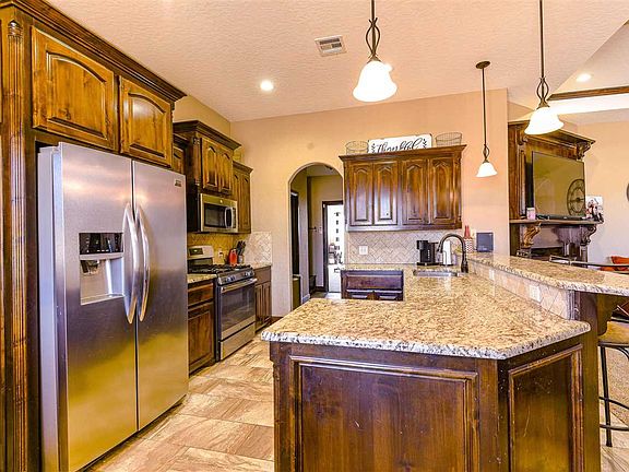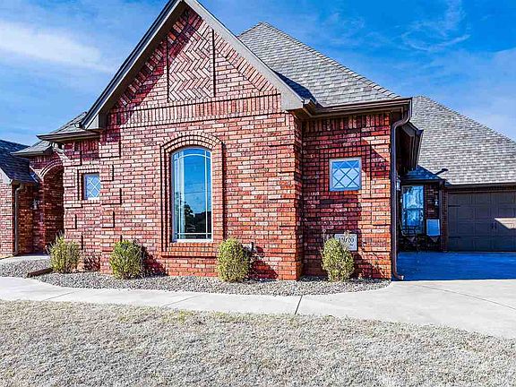 Very nice home! Approx 2000 sq. ft, 3 bedroom, 2 1/2 bath with separate office that can easily be used as a 4th bedroom located on .62 acre lot in Prairie Hill Addition. Natural gas fireplace, high efficiency gas heat & gas range for energy savings. This Filmore style home has an open floor plan with floor to ceiling windows overlooking the backyard. Eat-in kitchen with beautiful Alder cabinetry, granite, stainless appliances, breakfast bar & large walk-in pantry. Utility room with folding area plus storage. Primary suite features bay ceiling & floor to ceiling windows. Double sinks, Jacuzzi tub, walk-in tiled shower & spacious walk-in closet with 2 built-in dressers. The 2 garage has been made into a play room but seller is willing to take down temporary wall and install garage door openers back upon buyer request. It also includes a saferoom and a mini split. There is also a separate 3rd garage and a huge privacy fenced yard. Contact Tiphanie Murphy to view. 580-512-2135