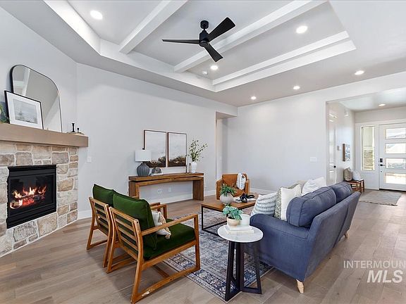 Tresidio Homes presents a Custom Floorplan designed specifically to compliment this amazing cul-de-sac lot with beautiful golf course views. In this design, luxury and functionality intertwine seamlessly. The soaring 10-foot ceilings will amaze you upon entry. Once inside, you find the heart of the home: a chef's dream kitchen boasting KitchenAid appliances with a gas cooktop & convection oven, custom cabinets extending to the ceiling, and timeless finishes. Indulge in the open-concept living area, where a stone-wrapped fireplace invites both relaxation & social gatherings for a harmonious flow adorned w/gleaming hardwood floors and painted wood beams on the 11ft coffered ceiling. Retreat to the opulent primary bathroom featuring quartz countertops and a lavish floor-to-ceiling tiled walk-in shower, an oasis of tranquility with a spa soaking tub. Secondary bathrooms echo this elegance with quartz counters and tile floors. Model home in this community is open daily 12-5pm. 11484 S Saylis Pl.