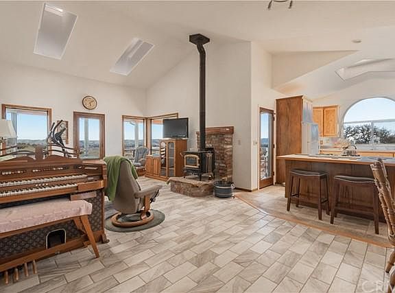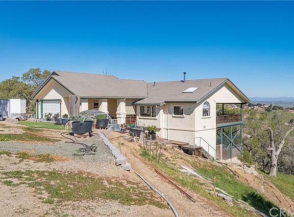 Custom built single level home located in the Long Valley Estates Westside Atascadero. This home is Perched at the very top of the hill which gives the most amazing 360 degree views towards the East and West including Creston, Templeton and all the way to Paso. Original owner with pride of ownership built this home around the view. upon entrance the open floorpan boasts floor to ceiling windows offering a stunning back drop. The 10-16ft cathedral ceilings and skylights leaves this home light, bright and airy. The floorpan offers a flow from the kitchen to the living out to the large 800sqft covered deck. Perfect to enjoy the long summer nights, bbq, and watch the full moon rise. The chef's kitchen is spacious with swamstone countertops, custom hand painted tile back splash, built in butcher block, Oak cabinetry with full pull out drawers, lazy Susan and pull out racks the corner cabinets. The three car garage is spacious and deep with one bay 1ft taller to accommodate a larger truck. There is a large separate bonus space under the house with two separate areas approx. 600-800sqft that is insulated and framed for windows plumbed with a separate 20 amp electrical service and gas. Perfect for man cave, art studio or separate living space. The property is approx. 4.3 acres fenced and crossed fenced for animals (see CC&R's), troughs in place plenty of room to roam. Seasonal creek, many types of Oak trees, wildflowers, and established planted Italian Stone Pines and producing black walnut tree. The half circle driveway is paved & two separate entrances: One swing gate the other a roller gate a paved driveway there is plenty of parking for a boat, trailer or RV. could have room to build a shop (check with City). This home has been well maintained by the owner. With well thought out details such as custom Oak window sills, 4 glass French doors for North/West views. Custom brick hearth w/ wood burning stove, LED lighting, many receptacles, attic access, irrigated from the main home, all new hose shut off ball valves under the home access with lighting. This is a rare opportunity to own this much acreage a mini ranch so close to town. With City water and natural gas. All located with the most amazing views at the top of the world. Listing agent has not validated or verified information. Buyer to verify all and any information.