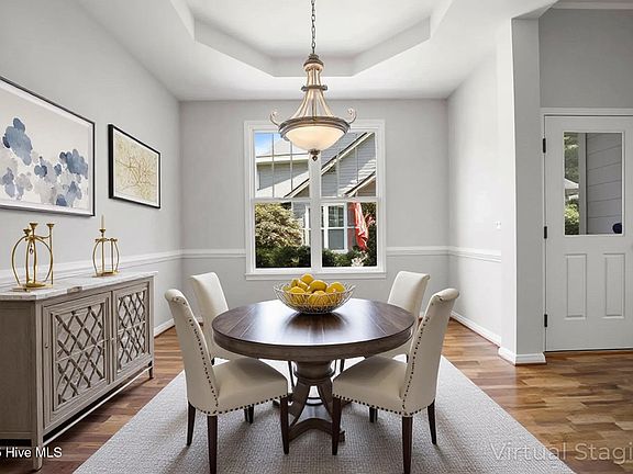 Step into easy living in this beautifully updated end-unit townhome offering a main-level primary suite. The light-filled kitchen shines with crisp white cabinetry, quartz countertops, a marble backsplash, and brand-new stainless steel appliances—including a sleek French-door refrigerator. The spacious living room flows seamlessly into the vaulted sunroom, where skylights and a see-through gas fireplace add warmth and charm. Whether used as a cozy den, reading nook, or home office, this flexible space is a standout with built-ins and backyard views. Freshly painted in soft, neutral tones and offering brand-new carpet, this home is truly move-in ready. Enjoy outdoor living on your private rear patio, perfect for morning coffee or evening gatherings. Washer and dryer convey for your convenience. All of this in a vibrant neighborhood with nearby shopping, restaurants, pubs, hardware stores, and greenway trails. Take advantage of an optional membership at The Greenway Club, just down the street, offering a pool, tennis, pickleball and community activities. Convenient access to 540 and Capital Boulevard make commuting a breeze, and WakeMed North Hospital is just minutes away.