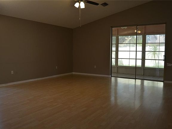 SUPER CUTE 3 BR, 2 bath, 2 car garage single family home with a FENCED BACKYARD in a nice neighborhood minutes away from the Pasco Hernando State College campus. Conveniently located on a CUL-DE-SAC in The Oaks at River Ridge, this little gem has plenty to offer. Neat & clean and bursting with curb appeal, enter to an OPEN FLOOR PLAN with vaulted ceilings and loaded with NATURAL LIGHT. The spacious living room / dining room combo opens to an inviting kitchen with breakfast nook and also has triple sliders to a relaxing COVERED / SCREENED PATIO with a private 6 ft vinyl fenced backyard. SPLIT FLOOR PLAN with only LAMINATE or TILE floors (no carpet here!) has the 12x15 master BR separate from the secondary bedrooms - master has a 6x5 WALK-IN CLOSET and en suite bathroom with dual vanity and shower stall. BR's 2 & 3 have ample space and a hallway with their own bathroom. BR 2 has its own walk-in closet, and BR 3 could also make a great office or den with a sliding glass door to the patio. All appliances included, even WASHER & DRYER. Trash collection is being paid for by the landlord. Home has a "Nest" thermostat system and camera security as well. Garage has a utility sink and side door to the fenced yard. The Oaks also has a huge COMMUNITY POOL. Publix and other shopping & dining options are just down the street. You're going to love living here!