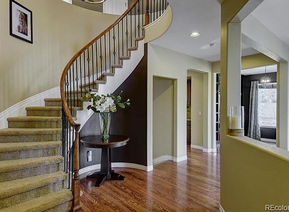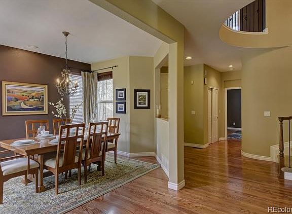 Located in The Hearth at Highlands Ranch! This Shea Home Dahlia model, is on a quiet cul-de-sac street, and it is GORGEOUS! The spacious floor plan includes 4 bedrooms, 4 baths, main floor study with 3,974 finished square feet which includes a finished basement with granite topped bar and family room. Sweeping spiral staircase to the second level with wrought iron balusters. Expanded master bedroom with sitting area. Hardwood floors throughout main level. Updated kitchen with designer light fixtures, expanded island, under cabinet microwave, travertine subway tile backsplash and beverage refrigerator. Butlers pantry. Professionally landscaped backyard retreat. 3 car garage. Conveniently located near the Southridge Recreation Center and Paintbrush Park.