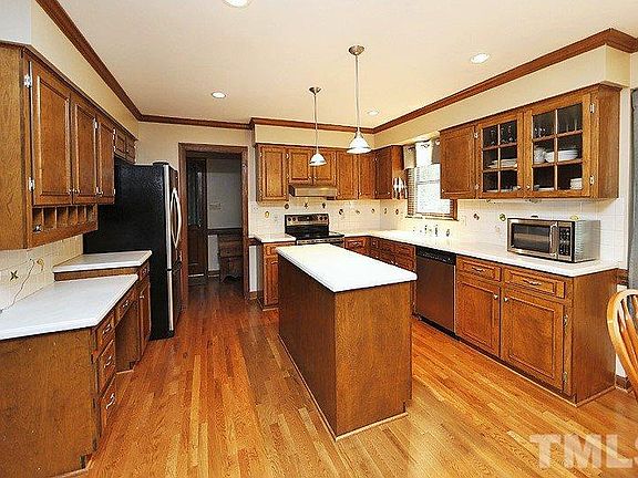 Traditional brick front beauty in prime N. Raleigh location, situated on 1.62 gorgeous acres just minutes to 540 and Falls Lake! Main floor has new hardwoods in KIT/BA/BKFST/FAM that have been beautifully matched to original DR, FOYER and LR. Spacious kitchen has SS appliances and work island, w/ large BKFST and FAM leading to rear covered porch, deck and huge fenced back yard. 2nd floor features 4 BRs plus bonus w/ rear access. Updated baths, newer HVAC, roof and Pella windows, 3rd floor walk-up attic.