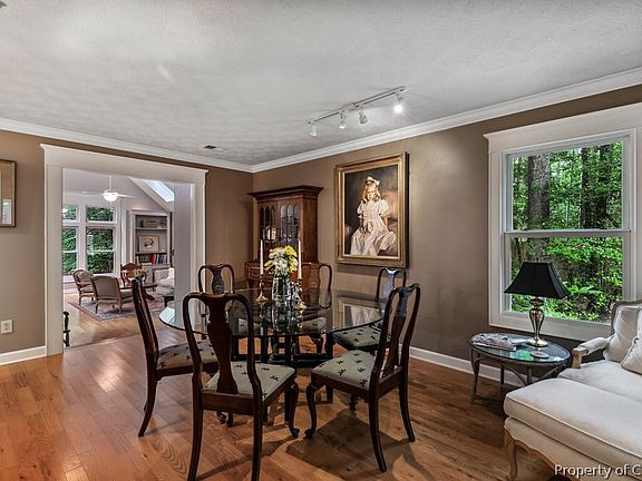 Utterly Charming Home nestled on picturesque 1.5 acres left naturally beautiful for low maintenance living. Covered front porch, rear screened porch & storybook swing blanketed by trumpet vines offer all options to enjoy the serenity of this lovely setting. Gorgeous, vaulted ceiling Living Room boasts wood floors & built-in custom cabinetry, formal yet open Dining Room & handsome Kitchen featuring built-in coffee bar, pantry & transom window. Spacious 1st floor Primary Owner's Suite includes two walk-in closets, private ensuite Bathroom with double sink vanity & huge walk-in tile shower and doors leading to rear deck with pergola. Two additional Bedrooms & a full Bathroom round out the first level. Upstairs you'll find an open Den & Office, guest bathroom & Bonus Room that adapts to your needs! Detached 1 car oversized garage, 1-car Carport, 22KW generator, crown moldings, sealed crawlspace with dehumidifier, high speed internet by Cox, Leafguard gutters & so much more! A true GEM!