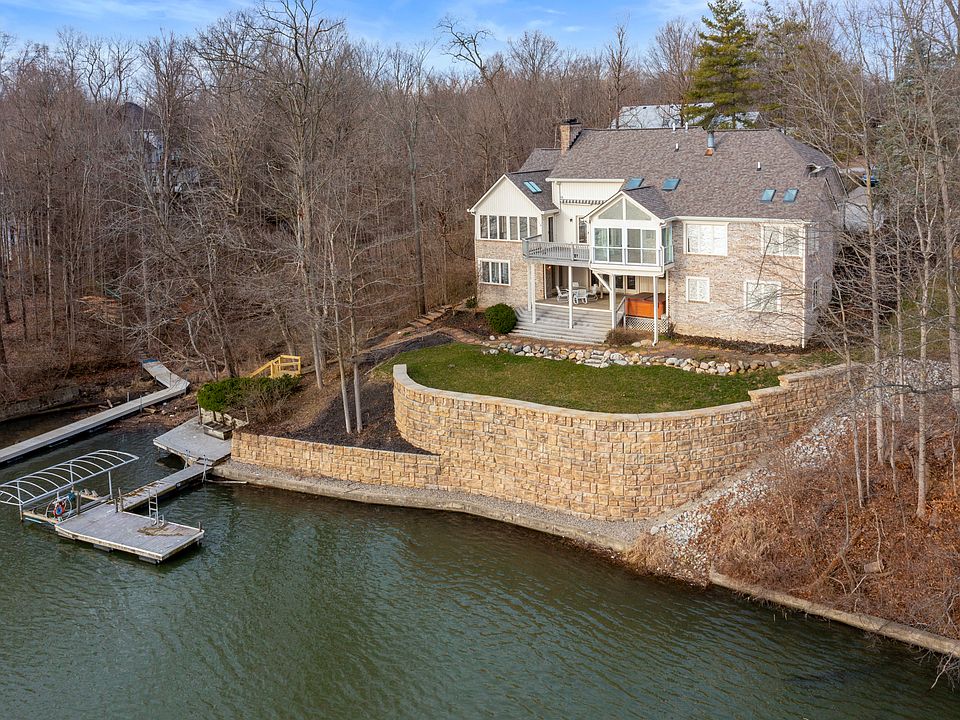 LAKEFRONT PROPERTY. With nearly 6,000 square feet of living space, 5 bedrooms and 4 baths, this custom-built ranch home with walk-out basement is located on a private cul-de-sac in the highly desirable Geist neighborhood of Feather Cove I. On the exterior this private lot offers mature trees, outdoor entertaining space on 2 levels, and private dock with boat lift. Once inside you'll find the main level which consists of a formal dining room, multiple living spaces with 2 dual fireplaces, cathedral ceilings, wet bar, loft, and primary suite with fireplace and private patio entrance. 100% finished basement includes a mirrored exercise room, living space, plus an apartment perfect for guests or au pair.