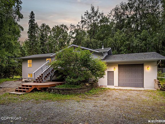 Great opportunity to own a classic Alaskan home on a private lot on the Hillside. The home is on a 1-acre flat secluded lot, zoned for horses. This home has excellent bones and has been meticulously maintained by the owners. Downstairs has a family room, pantry plumbed for a wet bar, full size bath and some additional spaces that can be used for an office or work out area.There is a lift/elevator between floors. Upstairs you will find 2 full bathrooms, 3 bedrooms, open concept kitchen, dining and living space. Upstairs has a beautiful wood floor throughout and a Vermont Castings woodstove. The gate into the backyard will accommodate passage for a motorhome and other toy storage. There I a 24x24 unfinished shop. Brand new septic system and leach field 2022.