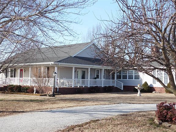 Pristine home on 5 acres with beautiful views! This spacious home features 2,821 sq. ft., 3 BR, 3 BA, office, huge walk-in closets, 6" walls, wood burning fireplace, double oven, oak cabinets and 2" blinds. It also has an electric dog fence and vinyl fence around the house. Located on a blacktop road just outside city limits. Not many like this one!