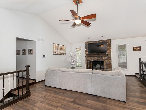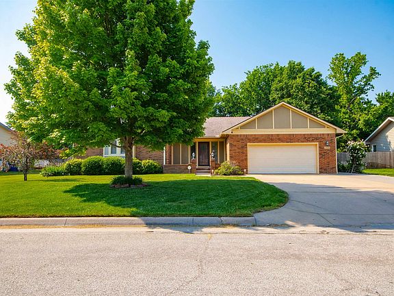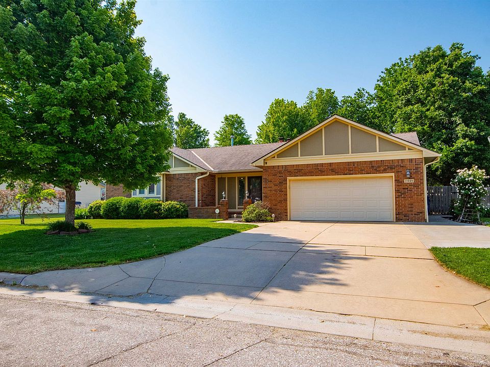 Gorgeous move-in ready brick home in West Wichita! Check out this beautiful single family home built in 1987 providing 4 beds, 3 baths, a 2-car attached garage, over 2,800 sq ft of TFLA, with a finished basement– all sitting on a spacious 0.25 acre prime residential lot! This home has distinctive curb appeal and what you see outside easily reflects the beauty of the home that awaits inside! A cozy main living space features a focal point stone-accent fireplace emphasized by the warm newly installed hardwood flooring. The kitchen features tons of cabinets and counter space, a large breakfast bar, newer modern laminate countertops and appliances staying with home! The master bedroom on the main level boasts a bench seat, twin closets, and a full ensuite bath – everything you need to make it your personal space. The other main level bedrooms share a full bath with tub in the hallway. Entering into the fully finished basement, you’ll find the living space, the fourth bedroom, a spacious bonus room with a closet, currently used by the seller as a playroom, and a large storage area with plenty of built-in shelving for all your storage needs. Another highlight of the home is its large covered patio. Host parties or organize barbecues in this oversized outdoor space with beautiful views of the fully fenced private yard. The playset is included in the sale. Recent home upgrades include the laminate kitchen countertops (2023), hardwood floors (2023), partial new wood fencing, brand new water heater, new interior paint, and new light fixtures. Live in the vicinity of Buffalo Park and the Rolling Hills Country Club. Enjoy easy access to schools, parks, and your local Walmart and Dillon’s along nearby W Central Ave. This is a gorgeous move-in ready home that’s in the center of it all. Come and see this wonderful listing and check out if this is the dream home you’ve been looking for. Call to schedule a showing today!