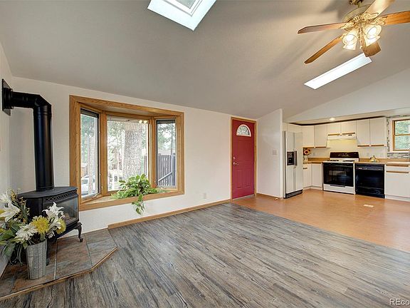 This darling home sits on a flat ½ acre lot with plenty of sun and views. Quick access to Conifer with Starbucks and the grocery store just 10 minutes away, and an easy commute to Denver. Good internet should you choose to work at home. Or, you may want to make this your peaceful weekend get-a-way cabin. Open space parks, Staunton State Park and national forest for all your recreational adventures are easily accessible. The open living room/kitchen has vaulted ceilings, a bay window, new flooring, and lots of light. The kitchen has ample cabinetry and counter space. The home has a lovely deck, and a backyard deck area too - you will want to take advantage of the great outdoor living! This is a great place for your hobbies too, as there are three sheds. Turn one into a gardening shed or chicken coop, and the another large shed is all set up to be a guest bedroom, but also has 220 if you want to convert to a workshop. The one car garage has a workbench, windows and back door. There is plenty of parking for your RV and toys as well. A new fence around the property was just installed. The well and septic were installed in 1993. This is lovely, convenient and affordable Colorado living!