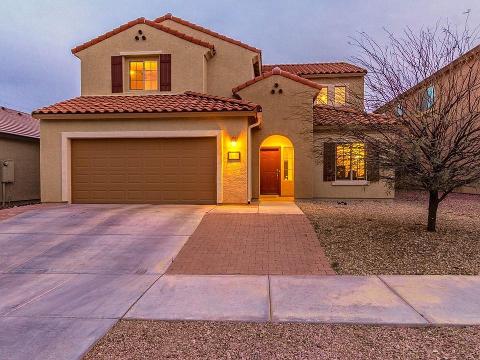 Check out this like new meticulously cared for 6 bedroom, 4 full bath, den, & loft with downstairs master bedroom & guest quarters! Entertainers open floor plan with large island, dining, cathedral ceiling & gorgeous wrought iron balusters along stairs & loft! Upstairs storage, 4 bedrooms, & two full baths for a big family or folks needing defined spaces. Hang out in the large backyard uniquely designed with artificial turf, pavers, & travertine tiled covered patio. Save hundreds on your electric bill with 100% solar, LED lighting, radiant barrier, solar screens, & 14 years of net metering! Water softener, rain gutters, & pre-plumbed laundry sink. Furniture and flooring options negotiable! Community pool, parks, trails, #3 AZ Vail school district, located by Raytheon, Amazon, DMAFB I10!