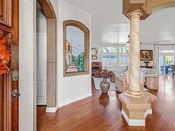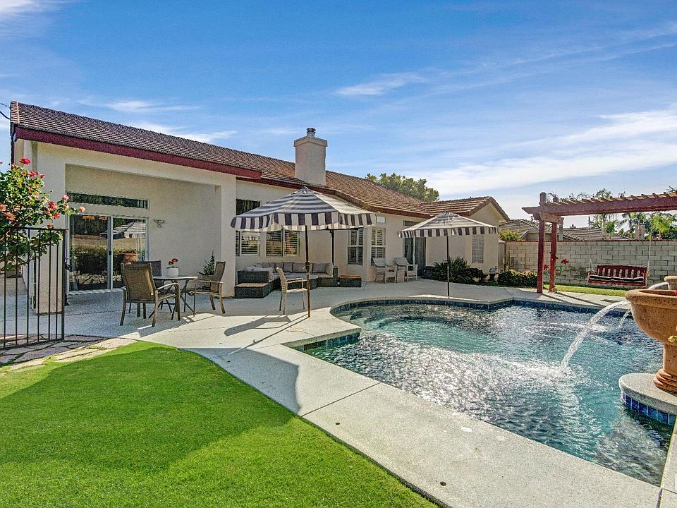 Take a look at this stunning corner-lot home nestled in highly desirable NW Bakersfield! From the moment you step inside, you'll be impressed by the tall ceilings, elegant finishes, and inviting layout. The spacious living and dining areas feature beautiful hardwood flooring, plantation shutters, and a cozy brick fireplace perfect for relaxing evenings. The kitchen is a true centerpiece, complete with granite countertops, stainless steel appliances, a pantry, and both a breakfast bar and nook for casual dining. With four spacious bedrooms plus a dedicated office, there's plenty of room for everyone. The master suite offers private backyard access, while the updated ensuite features a step-in shower and a huge walk-in closet. Step outside to your backyard oasis - enjoy a sparkling custom pool with water features, a covered patio for entertaining, and a large grass area ideal for pets or play. This home has it all, schedule your private showing today before it's gone!