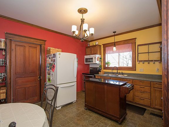 1920 Farmhouse complete with windmill, dinner bell, and lots of outbuildings. The wrap around porch lets you watch the asparagus, blueberries, & raspberries grow. Interior has hardwood floors, natural trim, handmade pocket doors, and a long hutch in the dining room. Kitchen has a double oven, small island, built in hutch and an eating area. Main floor class room could be a bedroom or office. Improvements include, most windows replaced, vinyl siding, electrical box, lots of fresh paint, 5'' well, water softener & rust remover, barn & lean too along with outside wood burner. Seller will look at any and all offers after 1:00p.m. on Monday 4/05/2021