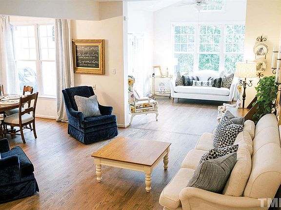 Falls River 3 BR 2.5 bath cul-de-sac townhome. Sun drenched southeast facing sunroom with uninhibited views of pond. Additional pond views can be seen from dining area, master bedroom, guest room, and elevated deck. New hardwoods throughout first floor and new wall-to-wall neutral carpeting throughout the upstairs. Extended one car garage with extra overhead storage and spacious walk-in crawl space. Excellent schools. Within walking distance of restaurants, grocery, gym, greenway, and parks.