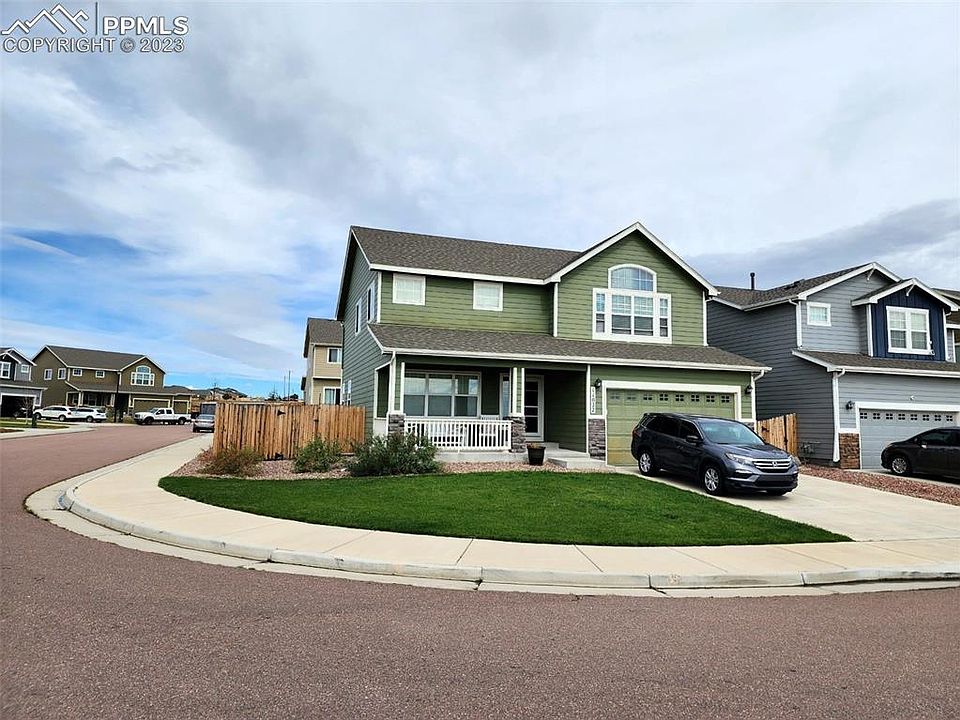 This Aspen View Imperial model is a spacious 2-story home featuring 5 bedrooms and 4 bathrooms, with 3 car tandem garage. The house is located on a corner lot, faces an open space, walking distance to elementary and middle schools, no HOA's with a Pikes Peak views. The main floor boasts hardwood floors, updated kitchen, family room, 1/2 bath, and dining room that walks out into the large back yard. Upper floor has large master, full bath with double vanity, walk in closet, additional closet, dressing area, and access to the laundry room. 3 additional bedrooms and full bath round out the second floor. The basement features an additional family area, full bath, and bedroom. This house is immaculate, and ready to move in! Don't let this one get away!