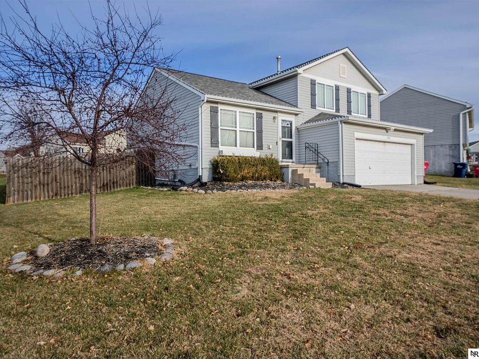 Pre-Inspected and move-in ready tri-level in desirable Deerwood. This home boasts 4 bedrooms, 2 baths, updated kitchen with Quartz counters and tile backsplash, updated lighting, Luxury Vinyl Plank flooring through main level, freshly painted and vaulted ceilings. Upstairs you will find 3 bedrooms with updated lighting, including Primary en-suite bathroom and LPV flooring in both baths. Fully fenced on corner lot, massive newer 20x20 deck, color matching shed new in 2022 and garage big enough to fit a full size truck. Awesome 9 acre renovated park is within walking distance makes this a must see home!