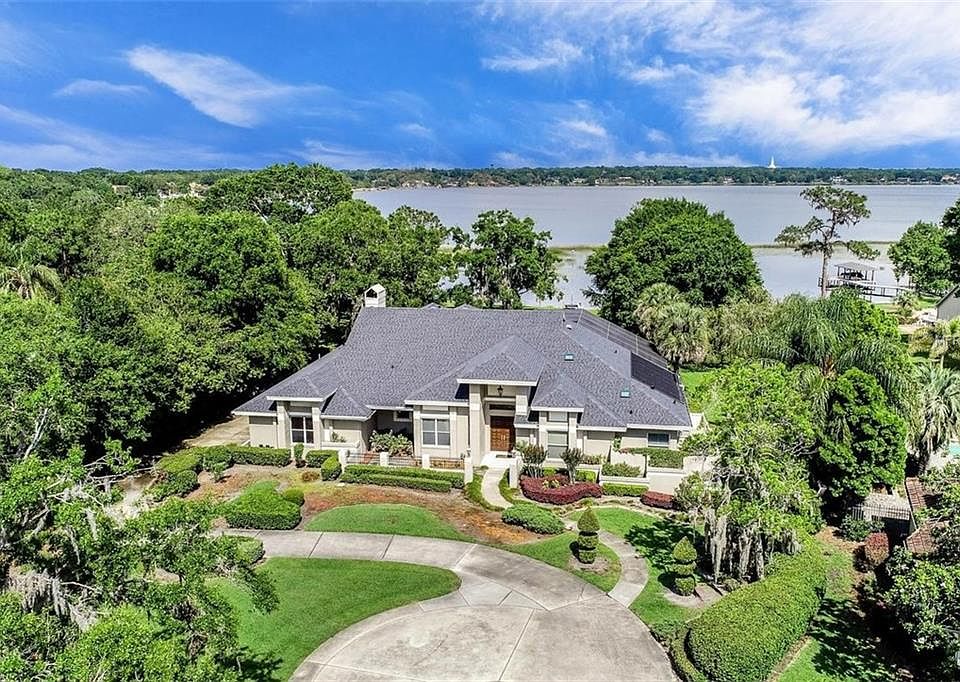 Awesome one level elegant home with many custom features plus a brand new roof!! Soaring ceilings allow lots of natural light to flow thru large multiple transom windows. Open floor plan has neutral decor and decorator niches through out. Lavish master suite with private office may be used as work-out room with lake views. One of the secondary bedrooms has built in wet bar that will accommodate the in-laws or college age student with a panoramic lake view. Gourmet kitchen with cherry cabinets, large walk-in pantry, gas Thermador five burner center island cook top, stainless steel appliances, and granite counter tops travertine and wood flooring. The kitchen opens to breakfast room and family room that boast a brick fireplace with open views of beautiful Lake Down on the "Famed Butler Chain Of Lakes". This home is ideal for entertaining with a spacious heated pool, spa and large patio area with summer kitchen that will accommodate many guests. Enjoy the wonderful 11 connected lakes multiple parks and the quaint Windermere downtown for Friday mornings farmers market. Lush landscaping with beautiful grounds that afford a private setting, rose gardens and expansive lawn with mature oaks and your own private boat dock. Three car side loaded garage with plenty of extra storage that also includes outside concrete apron for boat trailer's and storage area that is very difficult to find. Priced to sell!!!
