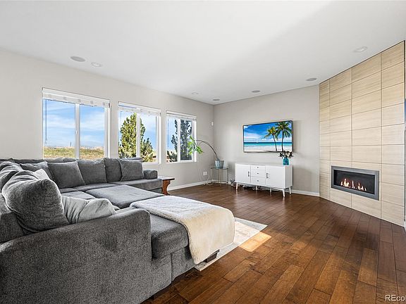 Enjoy movie nights in the main TV area with built-in surround speakers, or step out to your covered patio equipped with outdoor speakers and a gas line for your grill or future firepit—ideal for hosting under the stars. The primary suite offers a luxurious escape with a dual-head spa shower, double vanity, and generous walk-in closet. All 4 bedrooms have private or ensuite full baths, a rare and coveted layout. The 10ft ceiling basement is a blank canvas for future growth—add more bedrooms, rec room, gym, guest suite, or media space. Additional highlights of this home include: owned solar panels for energy savings, new carpet throughout, 3-car garage for vehicles, gear, or workshop. A short distance to pool, clubhouse, parks and trails. 10 min to downtown Parker’s dining, shopping. This home stands apart for its views, versatility, and vibrant community lifestyle. Whether you're hosting, working, relaxing, or growing—this is where life fits beautifully.