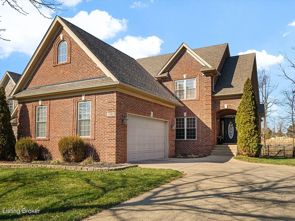 Welcome home to 11023 Radleigh Ln! This 4 bed, 2.5 bath brick home is located in the desirable Little Spring Farm subdivision. As you enter the front door you will notice hardwood floors throughout the main level. The two story living room is centered around a gas fireplace and is open to the dining area and kitchen. The kitchen has an eat-up bar, walk-in pantry, and ample counter space. A half-bath is located conveniently off the kitchen. The large first floor primary bedroom has an ensuite full bathroom with two vanities, a tub, glass shower, water closet, and walk-in closet. The first floor laundry is just off the attached two-car garage entryway.