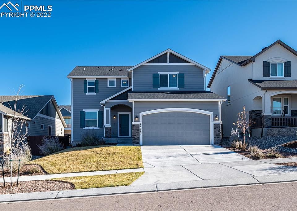 Welcome home to this Beautiful well-cared for 2-year-old Home in desirable school district 20. This home features a large kitchen, 3 bedrooms, 3 bathrooms, 2 car garage, office, dining room, family room and unfinished basement, in the sought-after North Fork community! Enter through the front door into the main level with open concept family room, dining room, and kitchen, perfect for entertaining guests. Spacious kitchen provides generous cabinet storage and pantry. Kitchen also features beautiful countertops, beautiful wood floors, stainless steel appliances, stove, and microwave. Main level also includes a separate office and bathroom. The Upper level has the Master bedroom which includes 2 large walk-in closet and luxurious master bath with dual vanity, soaker tub and separate shower. Bedrooms 2 has a walk-in closet and Bedroom 3 also has a large closet. The upper level also includes a full bathroom and a large laundry room. The views of the mountains from the second level are gorgeous. The unfinished basement gives this home a lot of room to expand to a large second family room, 2 more bedrooms and a bathroom or customize to how you would like it. It is a blank canvas to create the home of your dreams! The backyard is great for entertaining with a large patio and enough space for games! Enjoy your summer evenings barbecuing or playing games in the fully fenced rear yard. This home is in the North Fork community which features hiking/biking trails and lots of green space to enjoy. With easy access to Powers Corridor, you have quick access to shopping, restaurants, movies, and more. The home has virtually staged pictures. This home is move in ready. Come see this beautiful home while it's available!