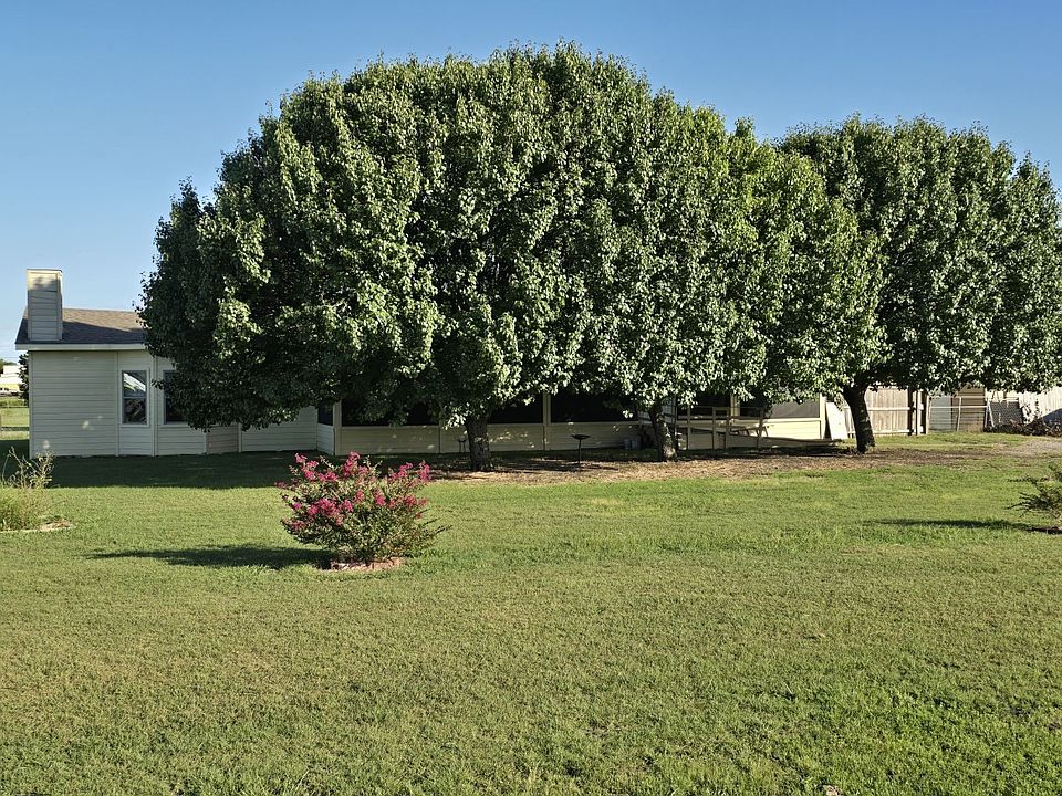 Country living close to multiple cities at an affordable price! Few and far between. Here is a 3-2 doublewide mobile home with a bonus room and a large, detached metal garage or storage bldg. set on a full acre of land with 5 large trees that flower in the spring. The backyard is fenced, though it needs repairs in various places. The front porch is utterly amazing! It runs the full length of the home is framed and has the same roofing as the rest of the house. It is enclosed with a solar screen in which you can see out, but others cannot see in and I am guessing it will seat about 20 people, it is big!