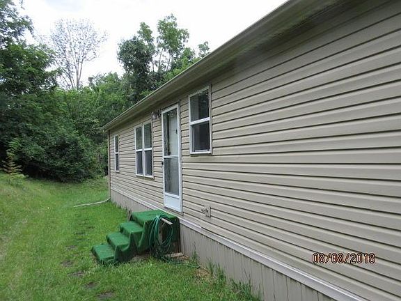 3 bedroom, 2 baths, manufactured home on 5 acres. Just north of Fallsburg on 586. Storage shed remains. Off street parking for 3 to 4 cars. Cash or conventional offers only. Well pump is 2 yrs old. Well depth is 400'. Propane tank leased from Ameri Gas. Central Air unit does not work. Washer dryer remain, 1 1/2 years old. New hotwater tank.