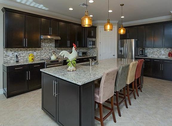 Move in Ready with lots of desirable upgrades, fabulous western orientation and views, 3 Bedrooms + den, Open Great Room floor plan has 2,488 s.f under air, plenty of under cover outdoor seating overlooking the heated salt water pool, oversized lot gives you additional privacy, Kitchen with 42' Cabinetry, Granite, Stainless Appliances, Cooktop, Big Center Island with Sink & Breakfast Bar, tile back splash, Pantry and big Formal Dining area, 2 Master suites, Master Bath, both Guest Baths and Laundry have Comfort Height Cabinetry, Toilets are Comfort Height as well, Diagonal porcelain Tile throughout, 8 ft. Doors, Plantation Shutters, Tray Ceilings and 3 Walk-in Closets, Pool Deck has Paverstone Decking, Electric Pool Heater, lanai has hurricane screen with panels for the rest of the home, Air Conditioned 2.5/3 Car Garage has 3 Garage Doors, Insulated, Attic Storage, laundry tub. There is a Whole House Water Treatment system, furniture/furnishing negotiable. For a complete list of upgrades, download the attached file.