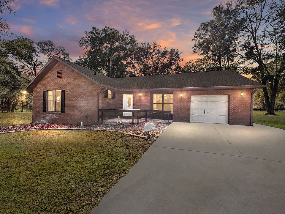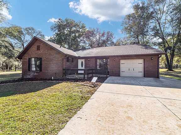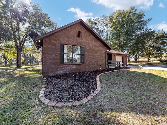 9 acre Horse Farm, Equestrian Property. Large (3/2) hill-top house with huge screen porch, guest house and 3/4 stall barn (w/ groom quarters). 6.5 acres of established pasture(5 paddocks). Beautiful live oaks everywhere. Just 15 - 20 minute drive via gorgeous horse farms from World Equestrian Center and 1 mile from 125 miles of riding trails on Florida Green-way with multiple trail heads. Exclusive horse farm neighborhood. Property is set back from 128th Ave. On private drive with circle drive approach. Delightful 50 acre Lake Otting park with tennis/Pickleball courts and walking trails sheltered by majestic oak trees, just 1 mile away. Rainbow River with state park just 6 miles away. Numerous National bike trail attractions abound in this area Includes 1 acre yard and owner will provide yard maintenance.