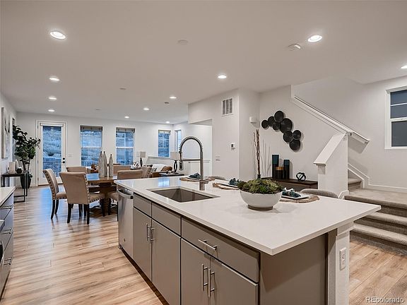Open House 2-4pm on Sunday July 23rd!Gorgeous urban contemporary three story home with 2 bay garage on green space west facing lot. Great home for first time proud home owners, investors or even for someone looking for zero maintenance home.This home is fully landscaped with and completely fenced. This home has 4 bedrooms, 3.5 baths, and covered deck. Design finishes include tile floors at laundry and bathrooms, wood-style laminate Evoke Coastal Collection Frieda flooring, MSI Frost White quartz kitchen counters with full tile backsplash, and Maple Espresso cabinetry. Excellent living of Parker town in Douglas county with great schools , near to Lone Tree, DTC (Denver Tech Center), Denver international airport and Denver downtown are 30 min away.