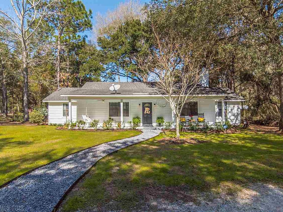 Ideally located in Sherwood Highlands subdivision in beautiful Fairhope. This one-story, 3-bedroom, 2-bath room has a bonus room that can easily be converted into a 4th bedroom. It has been completely renovated inside and out with fresh paint, ceramic tile and split brick floors, a great room with wood burning fireplace with a raised hearth. It has a large kitchen with a smooth top range, dishwasher, tile back splash, wood wainscoting in several areas, a large master with antique vanity, a walk-in shower and a walk-in closet. The exterior is also freshly painted with a fenced backyard, outside storage building, a large wood deck, and the 1/2 acre lot is covered with beautiful live oak trees.