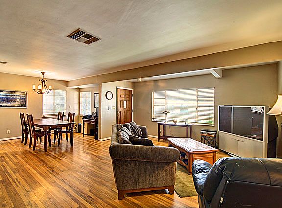 * STANDARD SALE * This Sunland home is nestled on a beautiful, tree-lined street just minutes away from Sunland Park. This WONDERFULLY UPDATED home has kept all of the charm and personality of an older home but boasts all of the amenities and luxuries of a newer home! As you enter the home you're greeted by a spacious living room with beautiful hardwood floors. The dining room and kitchen are directly adjacent and are perfect for entertaining. The chef's kitchen has new hardware, newer ceramic tile flooring, recessed lighting, and a great breakfast nook. There are 3 spacious bedrooms with great storage and share access to the COMPLETELY REMODELED hallway bathroom. There is also a private detached 2-car garage and a wonderful, low-maintenance backyard. The entire home is glowing with natural light and throughout the home you'll find warm hardwood flooring, new paint, new roof, recessed lighting, ceiling fans, granite counters, inside laundry, central air and heat, automatic sprinkler system and SO MUCH MORE! This is a MUST SEE HOME!!!