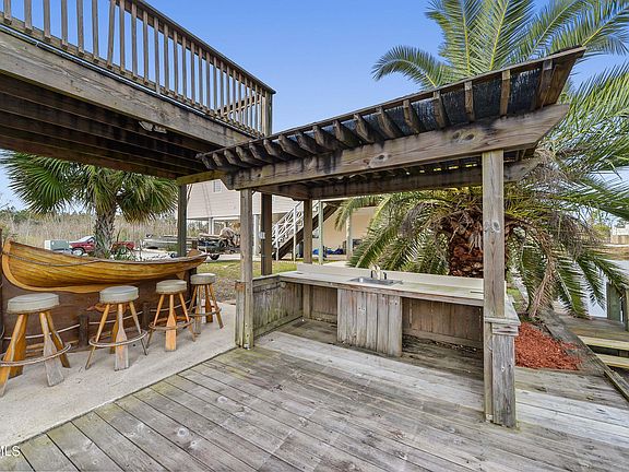 Waterfront living at it's finest., great open kitchen, dining and living area with cathedral ceiling, big covered porch, bulkhead with pier, downstairs entertainment with bar and fish cleaning station, utility lift, extended garage with big area for work shop or storage. new roof, and interior freshly painted. Quick out to the Jourdan River and a short boat ride to the Bay St Louis Harbor. Bay Cove Drive property owners have a shared boat launch at the end of the street. You are close to entertainment, casinos, golf course, fine dining, shopping and approximately an hour from New Orleans. Come and enjoy all the Coast Life has to offer!