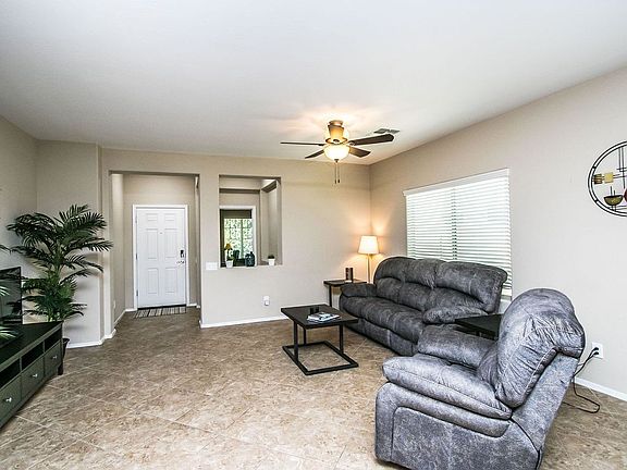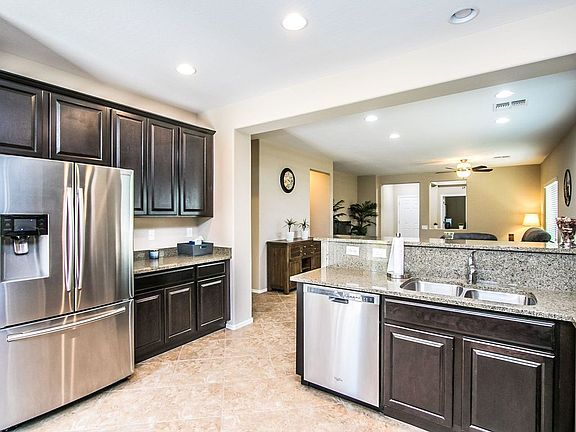 Barely lived in and home has lots of nice upgrades! Brand New HVAC 2019, Backs to grassy park so you get lots of privacy. 42'' raised panel cabinets, Granite counters, Stainless Steel appliance package. Lower cabinets all have roll out shelves and oversized pantry. 3 of the 4 bedrooms have walk-in closets. Raised ceiling heights to create open, light & bright. Over-sized neutral tile everywhere and carpet in bedrooms. Professional landscaping in backyard with beautiful travertine pavers, firepit, seating area and artificial grass. North-South exposure. Tankless water heater and newer water softener. Master bedroom has private door to backyard. Incredibly clean and gently lived in. Fabulous community with lots of community parks, walking paths and mature landscaping.