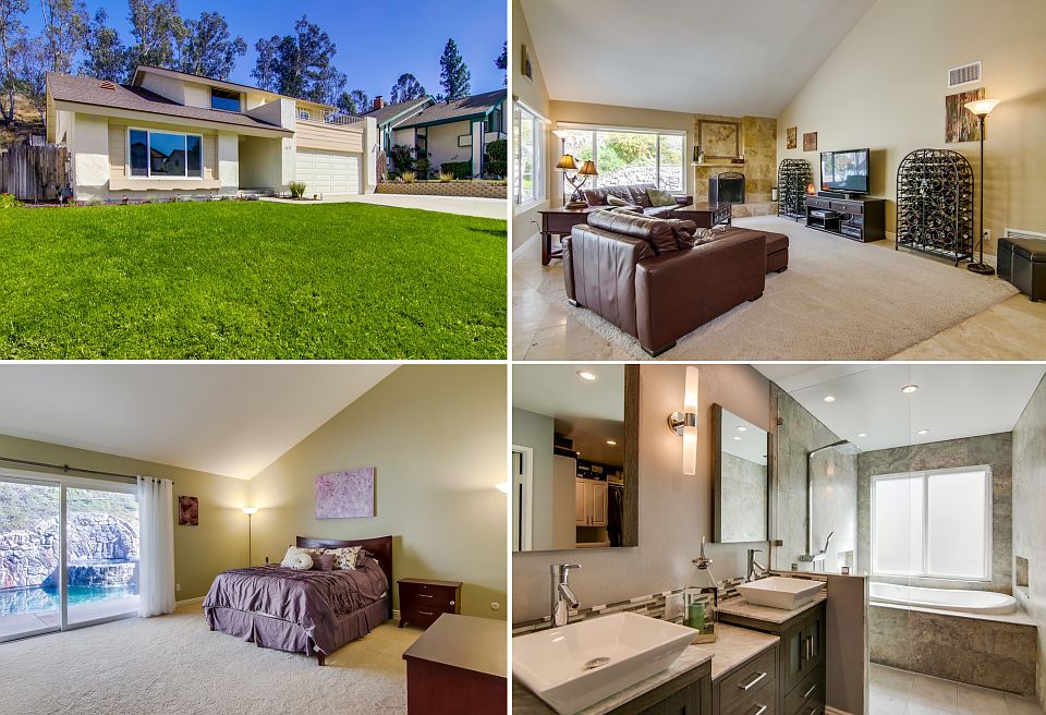 Location, location, location! Adorable family home, in the Avocado Village, on the border of Rancho SD & La Mesa! Great finishing touches include vaulted ceilings, dual pane windows, travertine flooring, new heating/air, granite countertops, pool, spa, waterfall & water slide! The master bed is located on the main level with a sliding door to the peaceful backyard & features a fully remodeled master bath with a huge walk-in closet. Upstairs features 3 beds, full bath & balcony with great views! MUST SEE!