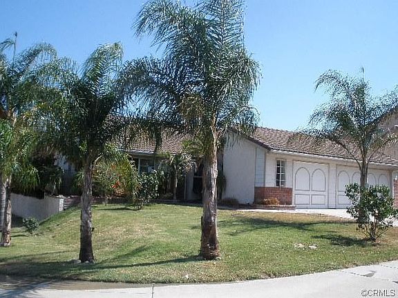 This beautiful home has been recently repaired and you will love the results!! Located on a raised corner lot with lush landscaping and several palm trees, this 1-story house has many great features to offer. The covered porch area leads to a formal living room with fireplace, open dining room, kitchen with full appliances, small breakfast area with built-in seating, large family room and 3 bedrooms in the hallway. Most of the rooms have vaulted ceilings and are freshly painted! Attached 2-car garage. And wait until you see the backyard! The nicely designed swimming pool with spa is surrounded by many palm trees and situated next to a nice gazebo area. Come and see this wonderful home in person to appreciate its many special qualities... and be ready to move-in!!