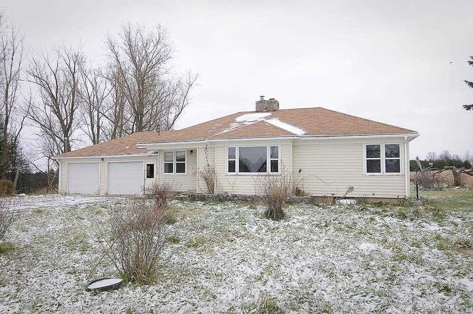 Great little country farm house!! This 3bd/1bth home offers just under 1000 sqft with spacious living area and fireplace plus a full basement and attached 2 car garage! All this sets on a beautiful 4.6 acres with fields, fruit trees and two large outbuildings! This home is just waiting for your finishing touches.