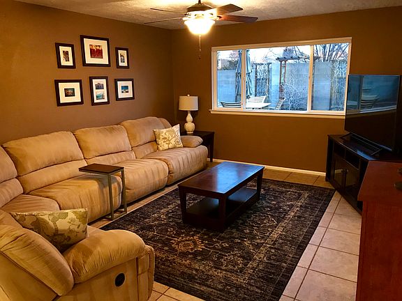 This fantastic updated home is conveniently located in the beautiful and highly-desirable Academy Place neighborhood. Very close to Georgia O'Keeffe Elementary & Eisenhower Mid School! Open floor plan with updates throughout; Remodeled Kitchen w/stainless dishwasher, and Thermador gas range, Corian countertops, new cabinets, stainless sink w/disposal, breakfast nook, 2 living areas, tiled floors, arches, 3 BR w/carpet, 1 3/4 Bath w/slate tile, ceiling fans, Gas FP, new shingle roof & stucco, and new vinyl windows. Lush landscaping, small storage shed, and mountain views. The convenience of nearby shopping and schools makes this neighborhood one of the most in-demand and desirable in Albuquerque. This area sells fast! Pre-approved buyers only please.