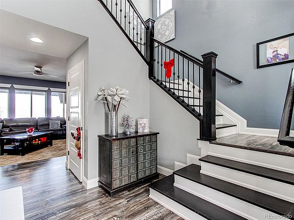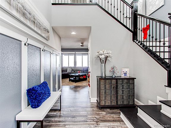 Stunning East-facing home in Parker's award winning community, Stepping Stone. Backing to Beautiful Sweeping Open Space, with VIEWS, VIEWS, and more VIEWS! Upon entering there is a wood floor foyer with vaulted ceilings, leading to a Great Room with a fireplace and a study.,and opens to the large kitchen with upgraded cabinetry and a remarkable island that seats 6! From the kitchen, there is a private dining area and a spacious pantry. Upstairs there's a Large Master Bedroom with a wonderful barn door leading to an ensuite bath, fitted with a his and hers sink and closet. There are three additional bedrooms, and 2 bathrooms, and laundry room upstairs.Fully finished basement has a media room, with a built-in screen, a wet bar with a dishwasher and wine coolers, bathroom, and recreation area, where one could have a Gym or an additional bedroom! Large Covered concrete Patio with built-in gas grill and beverage cooler,firepit,and a water feature., perfect for entertaining and to enjoy the sunset.Tons of Upgrades throughout,Brand New exterior and interior paint,custom light fixtures,Barn doors,extended concrete patio with a brand new fire pit,home wired with speakers,and much more..Do Not Miss it!
