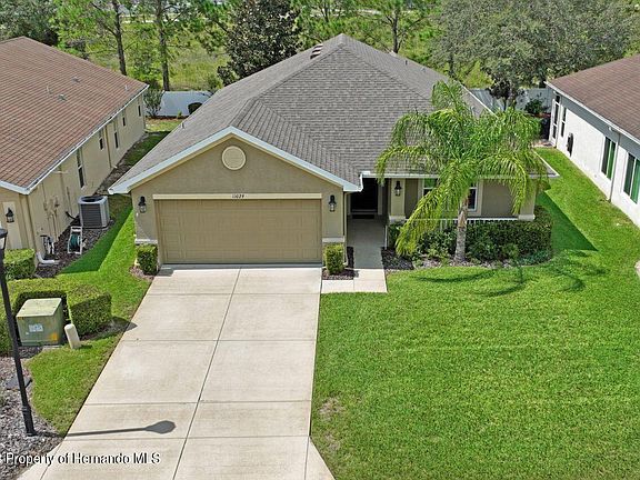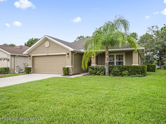 Located in the Wellington, a 55+ gated community with a 24-hour manned security gatehouse lies a 3-bedroom, 2-bathroom, 2-car garage, maintained patio home. Not a thing to do, move on ready and start enjoying the Florida lifestyle. Includes Maintenace package. This home has a front porch, open floor plan with a formal dining room, eat in kitchen open to the great room. Kitchen with wood cabinets, granite counter tops, all appliances. Inside laundry room off the kitchen includes washer, dryer, with a pantry/storage area and access to the garage. Garage has attic pull downstairs. Huge owner's suite with a private bathroom and access to the enclosed lanai. Master bathroom has dual sinks, granite countertop, private toilet room, separate shower, garden tub and a huge walk-in closet. Good size 2nd and 3rd bedrooms and a full guest bathroom. Plantation shutters throughout home, raised panel doors, doors to lanai with binds inside glass. Enclosed lanai will quickly become your favorite room in the house-enjoy a cup of coffee or tea while overlooking your manicured backyard. Built in 2018 and includes 1 roof replacement at 20 years. The Wellington is an Active adult community with many social events and clubs. There is a community pool/spa, bar and grill, tennis, pickleball, and bocce courts, billiards, exercise, library and computer rooms. With in 45 minutes to the Tampa airport and 15 minutes to the Gulf of Mexico. Internet and basic cable included.