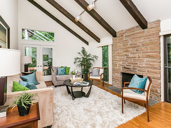 Contemporary living w/expansive view on gorgeous wooded lot backing up to open space & stream. Walking path nearby. Bird lover's paradise. Hardwoods- great room-(living room & dining room),wood burning fireplace,&deck. Bonus room near garage for in home business, artist studio, etc. New electric panels, newer HVAC. OPEN JULY 2. Enjoy Hobbit's Glen Golf Course & Restaurant & Columbia amenities.