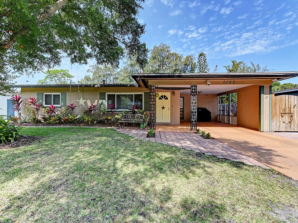 Multiple Offers- Highest and Best by Wednesday Oct. 7th 5:00 p.m. This 2 bedroom home with a den is really, really nice and well maintained. The home features granite counters, glass tile back splash, cam lights, pecky cypress ceiling, reverse osmosis system, plantation shutters in living room and ceramic tile throughout. 2020 Dishwasher, 2016 Washer/Dryer. Tankless water heater. 2017 new soffits, facia board and gutters. Hurricane shutters for all windows 2014. Fully fenced in back yard. Large gate at the left side of the home to open for access to back yard to park R.V., camper, boat or other toys. Large shed with work bench and plenty of storage. Irrigation system.